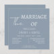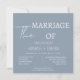 Convite à Praça de Casamento de Letra Branca com Script Azul Moderno Dusty