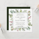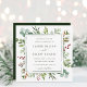 Este Natal | Formas de convite quadrado de noivado pintadas de aquarela eucalipto, folhas verdes, bagas vermelhas, galhos de pinho com quadrado verde e fundo verde no verso. Para personalização mais avançada deste design, clique no link "Personalizar mais". Itens correspondentes também estão disponíveis.