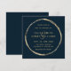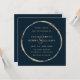 Este convite quadrado de casamento apresenta uma falso estrutura em círculo dourado com uma elegante e uma simples caligrafia com um fundo azul marinho.