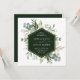 Este elegante convite para o casamento mostra cor d'água eucalipto, folhas verdes, flores com uma falso estrutura geométrica de hexágono dourado. Para personalização mais avançada deste design, clique no link "Personalizar mais". Itens correspondentes também estão disponíveis.