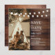 Praça De Fotografias Personalizada Rustic Wooden Salve O Convite De Data. Você pode personalizar todo o texto e a foto neste convite. Este convite para o tema rústico apresenta luzes de cordas e uma foto personalizada com tipografia branca elegante e bordas sobre fundo de madeira rústica. Você pode personalizá-lo pressionando o botão (Personalizar). Se quiser personalizá-lo mais, vá para a opção (Clique para personalizar mais). Dimensão: 5,25" x 5,25" Personalizável: Sim, Crie o seu próprio. —DMG A Perfeição—
