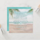 Cena de praia pintada por brisa de ilha, com Ondas de Oceano, praia de Sandy e Palm Trees, com um belo céu azul-lacrimogênio. Com Fontes Modernas De Script De Tipografia. Uma Praia Tropical De Verão, Ou design de casamento de destino - Convites personalizados à Praça do Casamento! Veja meu compro para ver a suíte de casamento inteira para este design!