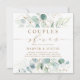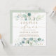 Este convite quadrado do chá apresenta cores d'água, eucalipto, folhas de cor verde botânica e dourado com guião dourado.