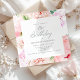 Um belo e feminino convite de festas para celebrar um aniversário em estilo elegante. Um quadro de elegante cor d'água, flores cor-de-rosa, e verde rodeia os detalhes da sua festa. Este convite está disponível como convite impresso ou download digital.