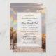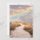 Uma cena inspiradora de paz e esperança apresenta um caminho de praia duna e arco-íris no céu.