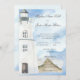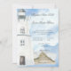 Este convite de casamento é ideal para noivas costeiras que procuram estética de eterno. Ele apresenta uma paleta de blues e tons neutros.