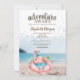 Um flamingo rosa bonito na praia tropical. Um convite bonito que pode ser personalizado com seu nome. Selecione o botão "personalizar" para alterar o estilo, a cor e o tamanho da fonte. Convide seus convidados para levantar um copo e se unir à diversão com este convite festivo.