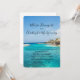 Convite de casamento com uma bela foto com um resort de praia tropical. Bonito água azul e praia branca arenosa com aqueles cabanas que lhe dão uma vibração tranquila na ilha.
