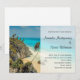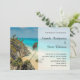 Convite de casamento com uma bela foto apresentando Tulum, México. Águas turquesa em uma costa arenosa. Palmeiras sopradas pelo vento balançando na brisa perto de um penhasco irregular. Suave e relaxante.