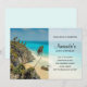 Convite de festa de aniversário com uma bela foto apresentando Tulum, México. Águas turquesa em uma costa arenosa. Palmeiras sopradas pelo vento balançando na brisa perto de um penhasco irregular. Suave e relaxante.