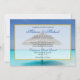 Um local de férias tropicais, convite de casamento com uma fotografia de uma praia tropical cênica. Uma praia branca arenosa e águas cristais azuis com um guarda-chuva secionado. Idílico e sereno.