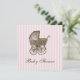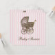 Este belo design, porém elegante, apresenta um carrinho de bebê vintage sobre um fundo chique encantador em listras cor-de-rosa doce de ambos os lados, com os detalhes do anúncio em marrom-mocha. Também estão disponíveis opções de outras cores de fundo igualmente deliciosas.