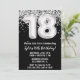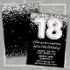 Black White Silver 18º Convite de aniversário 18 convite de aniversário para um garoto ou garota com escrevendo moderno e balões de folha divertida.