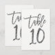 Convites Prata Brilho Moderno Número de Mesa 10 Dez Script