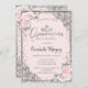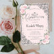Convites Prata Chic Tiara, Flores Rosa Diamante Quinceañera