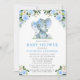 Convites Prata de Elefante Chá de fraldas Floral Azul de Aq
