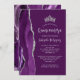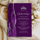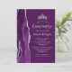 Este adorável convite da quinceañera apresenta uma fronteira de uma rica aquarela roxa, feita de cintilação prateada sobre um fundo roxo de ameixa. Aparece uma tiara prateada acima do texto. A palavra "Quinceañera" e o nome do convidado de honra estão em um roteiro elegante de cinza prateada, com o texto restante na fonte sans serif. O reverso continua o design roxo e prateado.