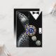 Um casal de arte suja vestindo roupa de gravata preta - ela está em um vestido de leopardo prateado e ele está em um smoking preto. A peça central é um chip de casino que contém texto personalizado e dados desfocados. Quer você se case em Vegas ou fique em sua cidade natal e jogue um evento temático no casino, este convite versátil e moderno é perfeito para qualquer ocasião especial - festas de aposentadoria, aniversários do marco, festas de coquetel e janto, jantas de ensaio, recepções de casamento, aniversários, eventos semiformais e formais ou reuniões de feriados festivos. Fácil de personalizar, use o botão "Personalizar" acima para adicionar seu próprio texto. Os adesivos de favor também estão disponíveis. Para perguntas ou solicitações especiais, entre em contato com o designer:cheryl@cheryldanielsart.com. Se este convite não for exatamente o que você está procurando, todos os meus produtos podem ser personalizados para acomodar suas necessidades específicas. Convite "Las Vegas Art Deco Birthday" de Cheryl Daniels © 2014.