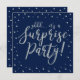 Celebre seu dia especial com este modelo convite de aniversário de surpresa prata e marinho. Este design apresenta caligrafia texturizada de ouro cônico e fundo de confetti. Você pode personalizar o texto para qualquer aniversário ou evento. (21rua, 30, 40º, 50º, 60º, 70, 80, 90, 100º)