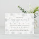 Celebre seu dia especial com este design de convite para noivados de na moda apresenta uma bela tipografia e padrões de fundo em textura prateada.
