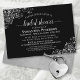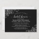 Este belo chá de panela é simples e elegante. Ele apresenta uma caligrafia antiga em um fundo preto clássico com bobinas de folha fina prateada nos cantos. Ele tem informações sobre o chá, bem como RSVP e Registro. Uma maneira perfeita de celebrar a noiva de estar em estilo!