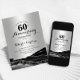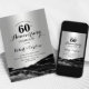 Convite de aniversário de 60 anos em mármore prateado e preto. Design formal elegante com fundo de mármore de ágata, prata brilhante falsa e tipografia em fonte de caligrafia. Cartão de convite moderno perfeito para uma celebração de aniversário de casamento elegante. Convites impressos da Zazzle ou modelo digital para impressão instantânea.
