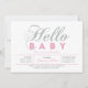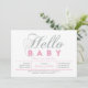 Celebre um dia especial para seu querido com este convite de chamada de bebê moderno! Este design apresenta uma tipografia simples, mas elegante "Olá Bebê" com textura brilhante rosa e prata.