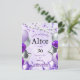 Este convite deslumbrante é perfeito para qualquer evento que exija um toque de elegância e diversão. O design prateado e roxo apresenta um arranjo caprichoso de balões e balões em forma de estrela, complementado por serpentinas roxas que fluem graciosamente pelo cartão. Este convite certamente estabelecerá o tom para um evento festivo e inesquecível. Convide seus convidados com estilo com este design atraente e sofisticado.
