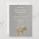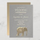 Simples, elegante convite para casamento de cinzas prateadas com monograma único de elefante de ouro, símbolo de amor, fertilidade e boa sorte.