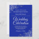 Este belo convite para o casamento apresenta um simples e elegante texto design de prata ou cinza em um vivo fundo azul real ou colorido de cobalto com um filigre floral de folha de prata nos cantos. Os ornamentados e as espirais, assim como a letra da escrita do rico, dão a este convite um ar de sofisticação e glamour, mas a sua simplicidade torna-o perfeito para uma cerimônia formal ou casual.
