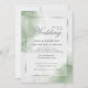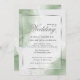 Convite De Casamento | Acentos de prata sobre uma aquarela úmida verde macia e verde-clara -