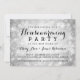 design de Convite de festas para aquecimento doméstico com motivo Silver Winter Wonderland, nome e data personalizados e texto adicional. Imprima a sua família e amigos com este na moda e o design moderno. Totalmente personalizável!