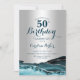 Teal e prata agam 50º convite de aniversário. Elegante design moderno com aquarela agate marble geode background, faux glitter prata e tipografia. Trendy convida o cartão perfeito para uma comemoração de dia das mulheres na moda. Impressos convites Zazzle ou modelo de impressão digital instantânea para download.