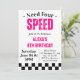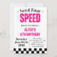 Precisa de quatro Convites de festas de aniversário para a Garota de Velocidade... Personalizou seus convites com o nome, data e detalhes do evento.