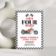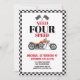 PRECISA DE QUATRO VELOCIDADES DE UM CONVITE DE ANIVERSÁRIO DE BIQUE PESADO. CONVITE DE ANIVERSÁRIO DE CRIANÇA EDITÁVEL DE ESTILO DE RETRO DE ESTILO DE PADRÃO VERIFICADO A PRETO E BRANCO