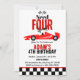 Precisam de um Convite de festas de 4 anos de velocidade Red Race Car Boy 4º aniversário Comece seus motores para uma inesquecível festa de 4 anos com nossos incríveis Convites de festas Red and Black Need Four Speed Boy. Perfeito para o grande dia do seu velocista! Personalizou seus convites com o nome, data e detalhes do evento.