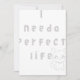 Esta design apresenta uma estética baleeira e minimalista. Ela inclui a frase "Preciso de uma vida perfeita" escrita em uma fonte divertida e desigual de cinza que dá um efeito casual desenhado à mão. Abaixo do texto está uma ilustração adorável do estilo cartoon de um gato pequeno e sorridente. O gato tem olhos grandes, nariz em forma de coração, e veste uma coleira com um sino, melhorando sua aparência fofa e amigável. O design global tem um esquema de cor suave e de cinza leve e transmite uma mistura de charme e humor, perfeito para produtos destinados a amantes de gatos ou para aqueles que desfrutam de expressões leves.