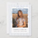 Celebrate your graduate in timeless preppy style with this elegant graduation photo collage announcement card. Featuring a soft blue stripe background and ribbon frame detail, this design includes a front photo display and a multi-photo collage layout on the back, allowing you to showcase multiple memories.