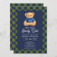 Convites Preppy Teddy Bearly Wait Checkboard Baby Shower