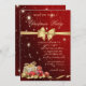 Um convite elegante para festas de Natal, com uma árvore de Natal dourada, bolas e presentes em fundo vermelho. Estes belos convites de Natal são perfeitos para convites de festas de janto de Natal, convites para troca de presentes de Natal, angariadores de fundos de Natal, convites para bolas de férias e outros eventos realizados durante o mês de dezembro. Use apenas os campos modelo para adicionar suas próprias informações de evento.