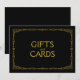 Sinal de casamento em estilo art déco simples e elegante "Presentes e Cartões", personalizado com o seu próprio texto, apresenta uma moldura art déco dourada sobre um fundo preto.