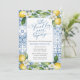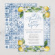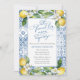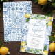 O "aperto principal | Watercolor Lemon Mediterranean azulejo" é um convite perfeitamente elaborado, ideal para um chá de panela com tema limão. Mostra limões de aquarela vibrantes, verde elegante e um padrão de azulejo mediterrânico em tons de azul macio e amarelo, adicionando um toque de sofisticação e alegria à celebração. Projetado pela CaMiDesigns, ele pode ser personalizado fácil e rapidamente com os detalhes do seu partido. Para pedidos, envio, informações sobre o produto e assistência adicional, entre em contato diretamente com o Atendimento ao cliente da Zazzle.