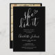 Este moderno convite de festa de formatura preto-e-branco "ela fez isso" pode ser personalizado com seus detalhes de formando e foto especial no verso. Projetado por Thisnotme©