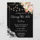 As coisas mudam. Envie aos seus convidados um lindo convite de casamento para alterar a data com esta decoração de flores cor-de-rosa e pêssego com renda e luzes de corda. Ótimo para casamentos rústicos e campestres.