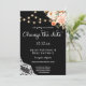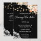 As coisas mudam. Envie aos seus convidados um lindo convite de casamento para mudar a data com esta decoração de flores cor-de-rosa e pêssego com renda e luzes de corda. Ótimo para casamentos rústicos e campestres.