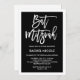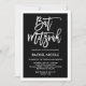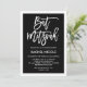 Este convite simples, porém na moda Bat Mitzvah apresenta um fundo preto com uma fronteira branca, e uma tipografia branca moderna.