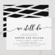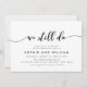 Convite de Aniversário de Casamento Sofisticado com as palavras "We Still Do" em uma fonte cursiva relaxada em preto contra um fundo branco, perfeito para celebrar qualquer número de anos. O cartão tem um verso preto com linhas brancas sobrepostas.