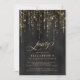 Preto glamouroso e Convite de aniversário Dourado - um convite perfeitamente glamouroso para uma festa de aniversário! O convite de aniversário apresenta "quarenta" em letras maiúsculas. O fundo é preto com as luzes de cascata dourada cintilantes no fundo. A parte de trás do convite é o brilho dourado.