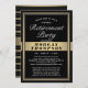 Quer amigos e familiares estejam praticando distanciamento social ou simplesmente vivam longe, conectem-se com eles online com um na moda virtual de aposentadoria! Todo o texto neste modelo é simples de personalizar para um drive-by/drive através de desfile de carro ou evento de videoconferência de zoom com bate-papo na Internet. Também é possível incluir uma mensagem pessoal, se necessário, devido a um cancelamento ou adiamento. O design preto branco e dourado apresenta folha falsa, caligrafia moderna de escrita e elegante deco de arte safra inspirada na tipografia. Observe que o ouro é impresso a cor, não a folha metálica. Este modelo de convite está preparado para uma aposentadoria, mas também pode ser para uma festa de despedida.