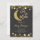 Preto Dourado Sobre o Chá de fraldas da Lua Convite para uma garota ou um garoto com uma lua, estrelas, e belo brilho de ouro falso.